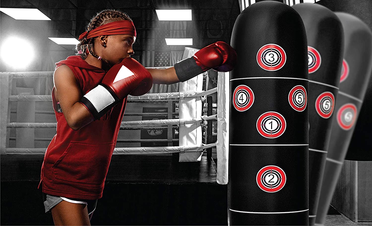 - Soporte de 63.0 in de altura: el saco de boxeo independiente es más grueso, más blanco, más diámetro para más capacidad de golpeo. Ten en cuenta que este es un saco de boxeo de enfoque recreativo, no un saco de boxeo pesado especial en el gimnasio. La suficiente fuerza de un adulto romperá el saco de boxeo inflable.